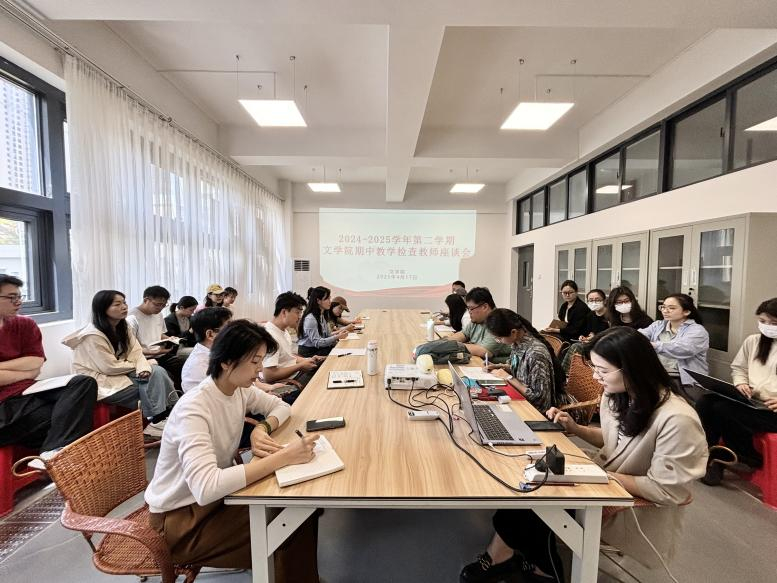 为深入贯彻落实学校期中教学检查工作部署,进一步倾听教师心声,关心关爱教师成长,促进教师之间的团队合作和凝聚力,4月17日上午,我院在南校区体育馆105召开2024-2025学年第二学期期中教学检查教师座谈会。文学院院长黄宇鸿,常务副院长梁镨文,党支部书记岳莹,教学副院长蔡森,学工副院长裴景旺,汉语言教研室主任姜玮,汉语国际教育教研室副主任李雪及文学院全体教师参加本次座谈会。