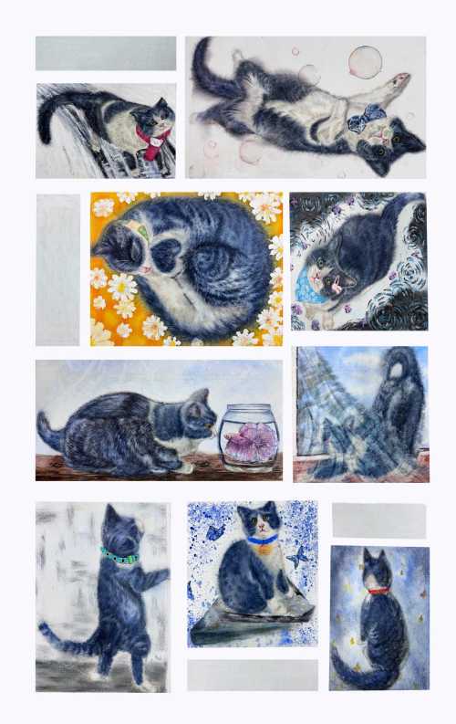 张馨萍 《猫咪日记》 170cm*170cm 绢本设色 2024