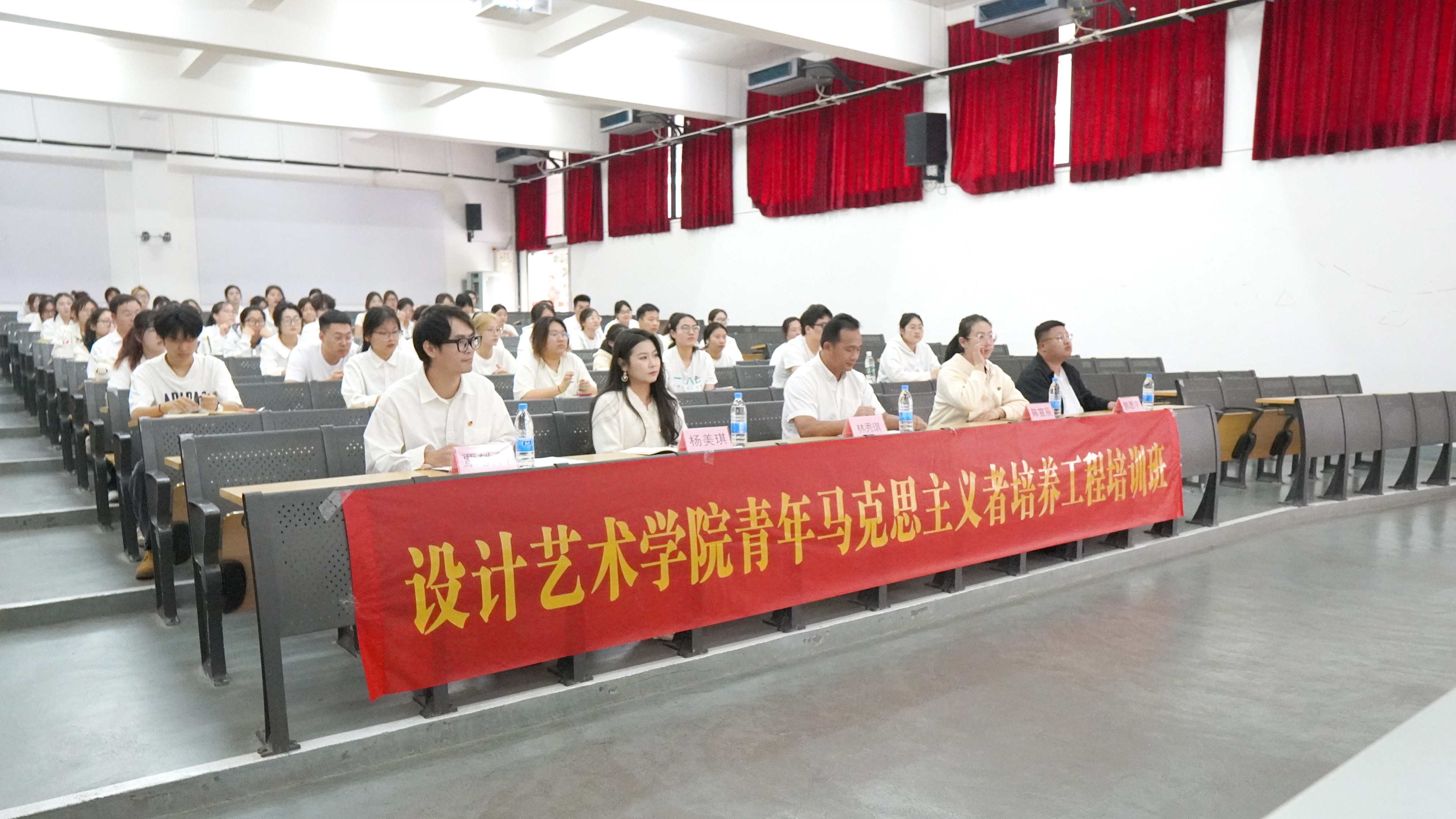 为发挥“青马工程”育人功能,铸牢马克思思想根基,设计艺术学院“青马工程”培训班开班仪式暨第一讲于12月19日在公德楼107教室举行。出席本次培训班的领导老师有校团委副书记杨美琪、设计艺术学院党总支副书记林秀琪、建筑与环境艺术学院分团委副书记陈宣辰、设计艺术学院分团委副书记覃轶科、造型艺术学院教师郭思宇,以及学院各团支部学生干部。