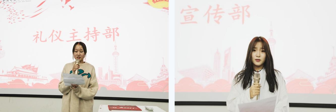 (礼仪主持部代表申欣婕) (宣传部代表郝瑞)