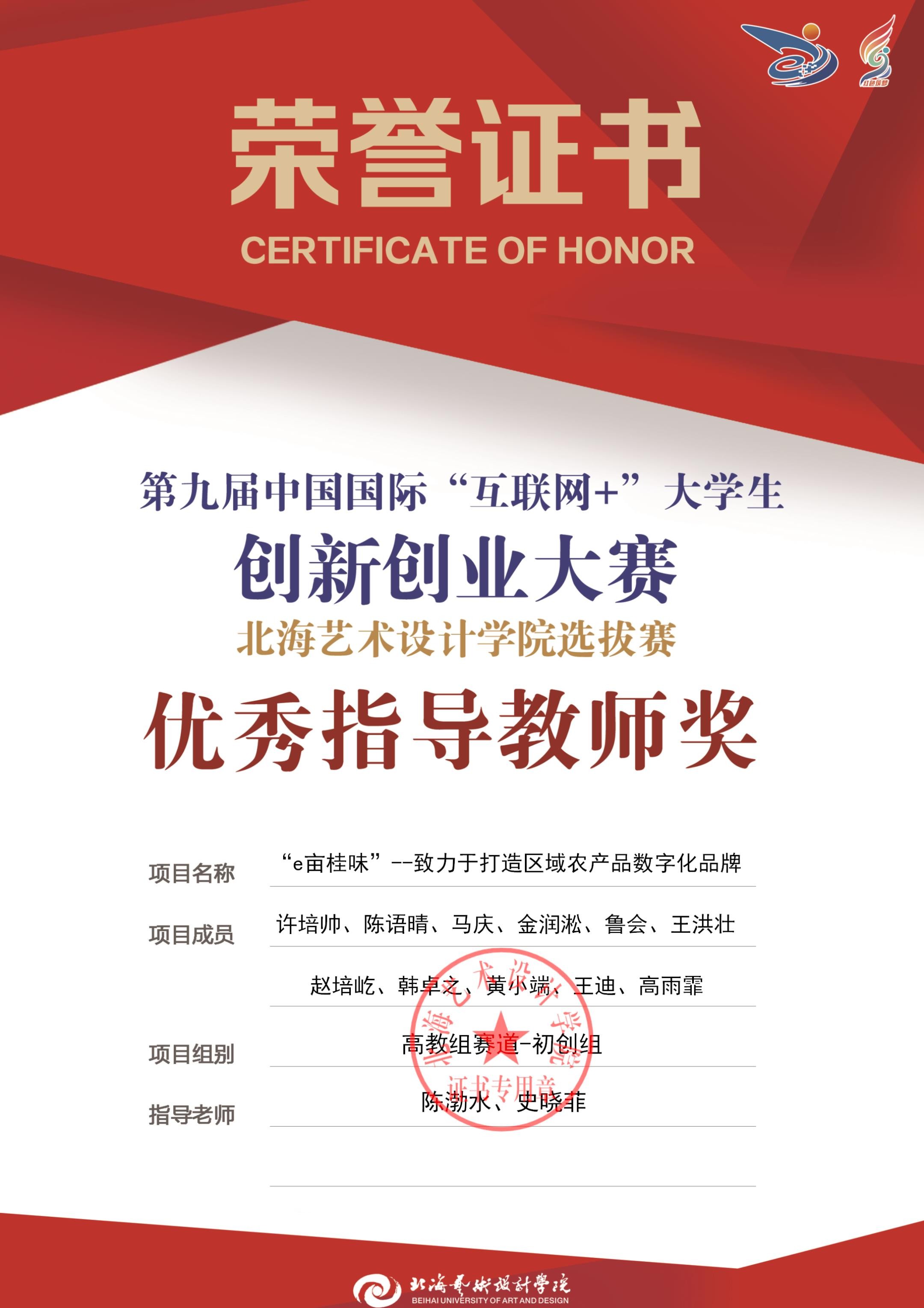 第九届中国国际互联网+大赛校级优秀指导教师