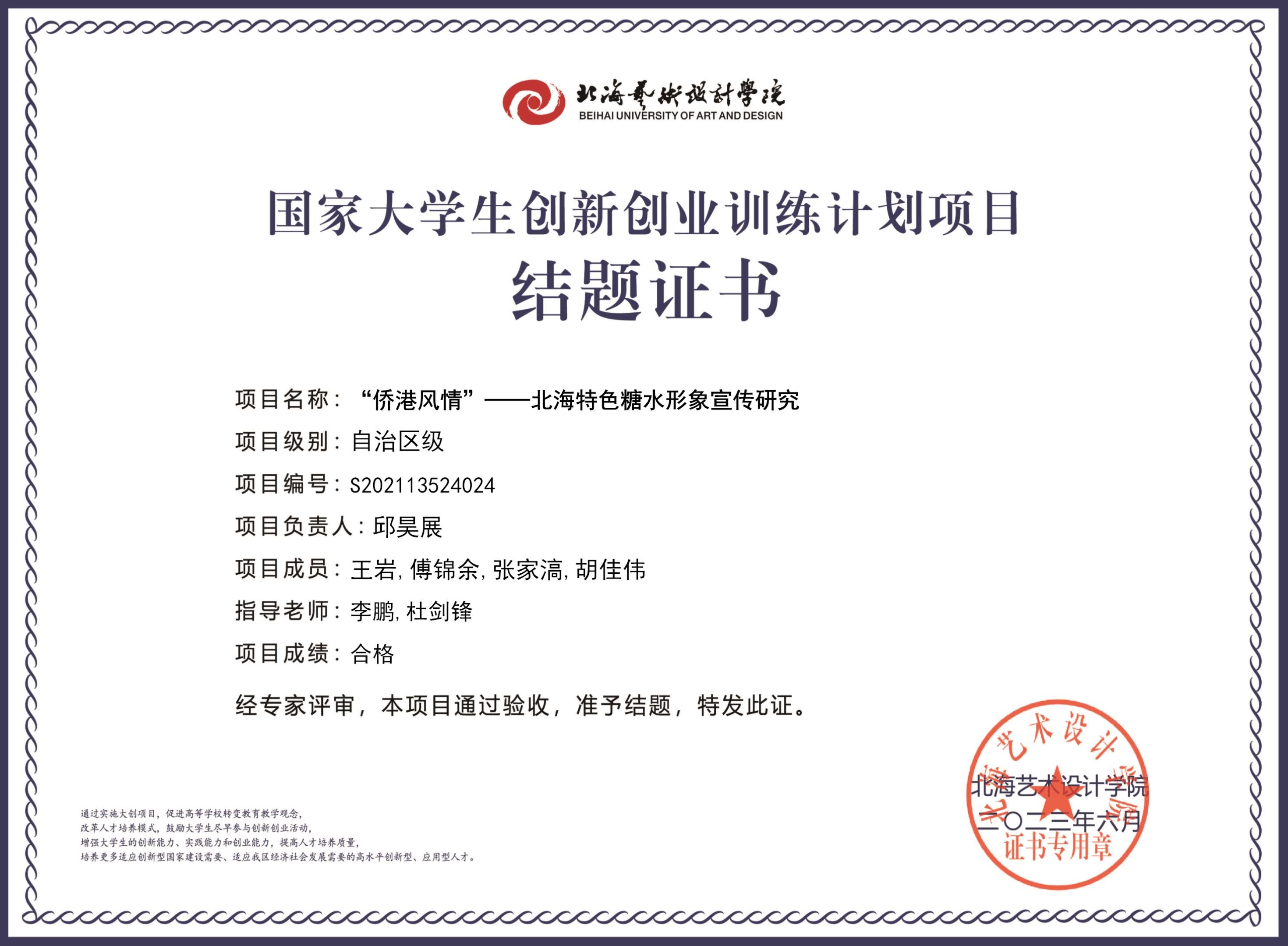 2023年大创项目结题证书(2021立项)