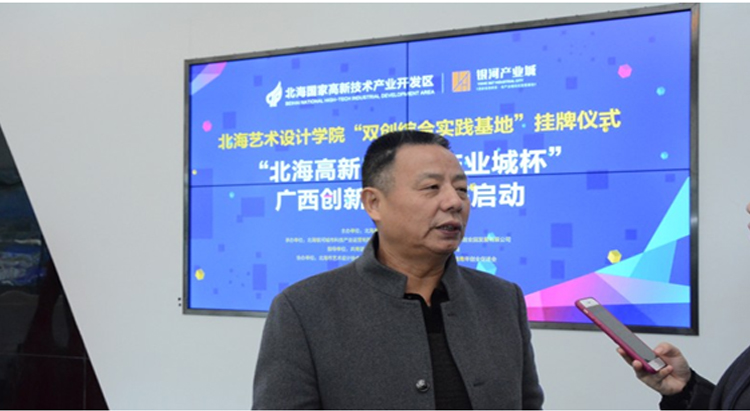 北海高新技术产业开发区管委会、北海艺术设计学院、北海人力资源与社会保障局、共青团北海市委员会的相关负责人,还有我院的师生们共同参加了北海艺术学院双创综合实践基地挂牌仪式暨“北海高新区银河产业城杯”广西创新设计大赛启动仪式。