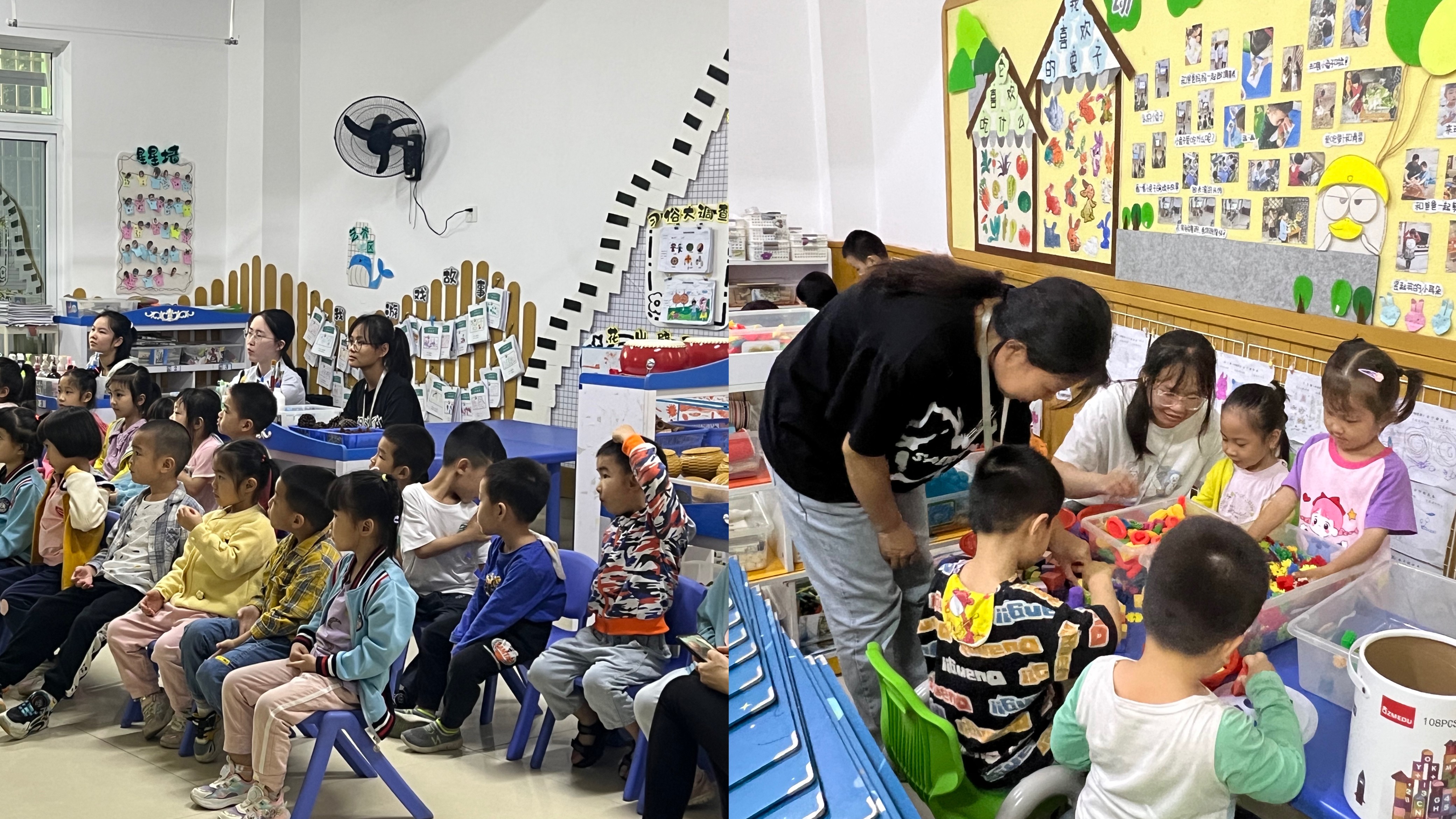 见习生给幼儿独立授课                                                                                见习生参与幼儿园环创活动