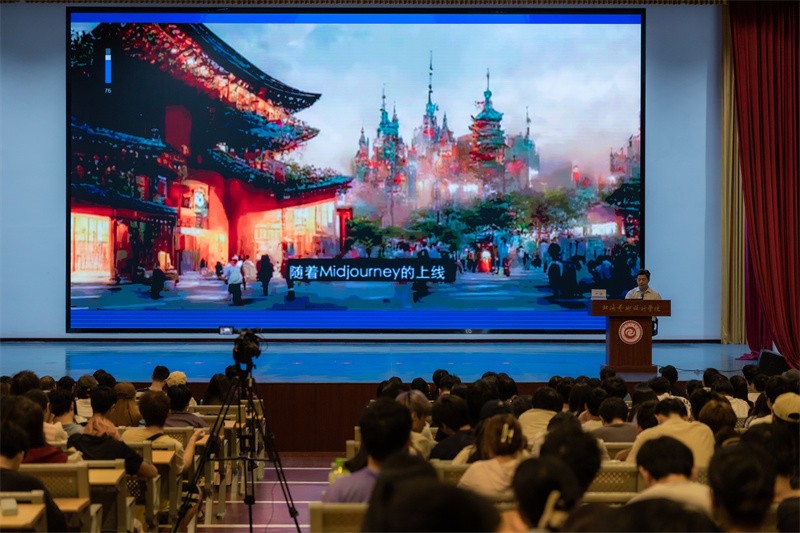 严晨教授指出作品不能被载体所束缚,这是广大师生在学习生活中需要进行思考的问题。他通过计算机与人工进行的绘画比赛和畅销全国的可口可乐的广告,介绍人工智能在平面设计和动画等艺术领域的运用,并介绍了两种可以在极短的时间内产出平面设计插画和不同风格动画的人工智能软件,从中分析人工智能的发展给人们带来的启发。面对未来人工智能带来的挑战,严晨教授鼓励广大学子要坚信人工智能技术代替不了人的创造力,大家在学校的学习中应该更加注重加强专业技能的学习。