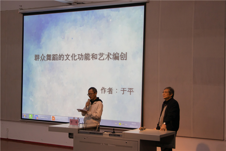 讲座过程中,于教授从新型城镇化进程中的群众舞蹈入手,讲解了群众舞蹈“人以群分”和“头领群舞”的现象,通过举例当下流行的社会广场舞,分析了群众舞蹈的发展历程和趋势。目前,新型城市中的群众舞蹈形成了两个新特征:一是以活动身体为主要功能,来弥补身体机能退化的缺憾;二是以追逐时尚为次要功能,在舞蹈中融入时尚潮流元素。