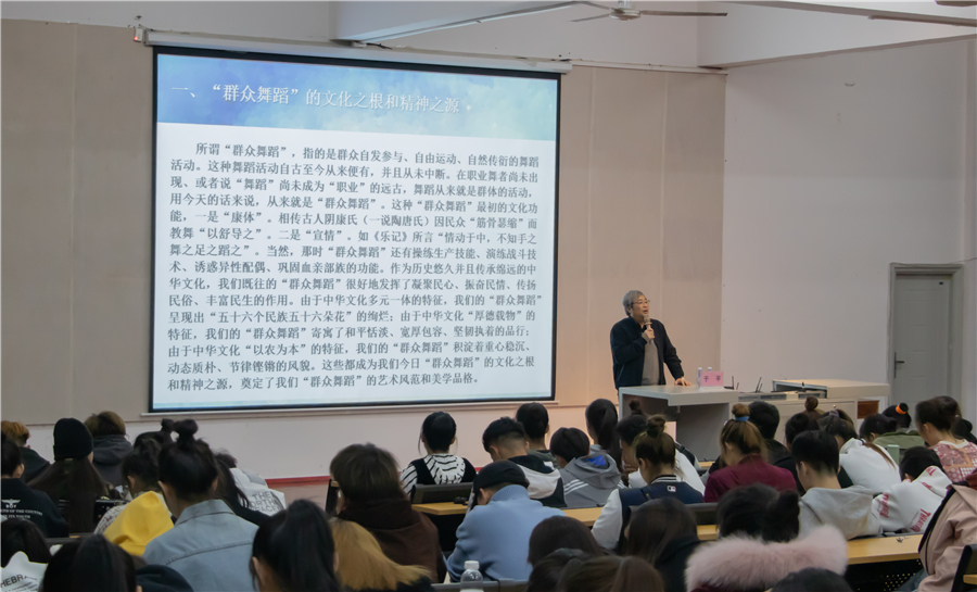 2019年12月5日晚7:30于西校区伦理楼107,南京艺术学院舞蹈学院院长、博士生导师于平教授为我校师生带来了一场题为《舞蹈的文化功能和创编实践》的精彩讲座,现场虚无坐席。本次讲座由我校副校长王斌主持。