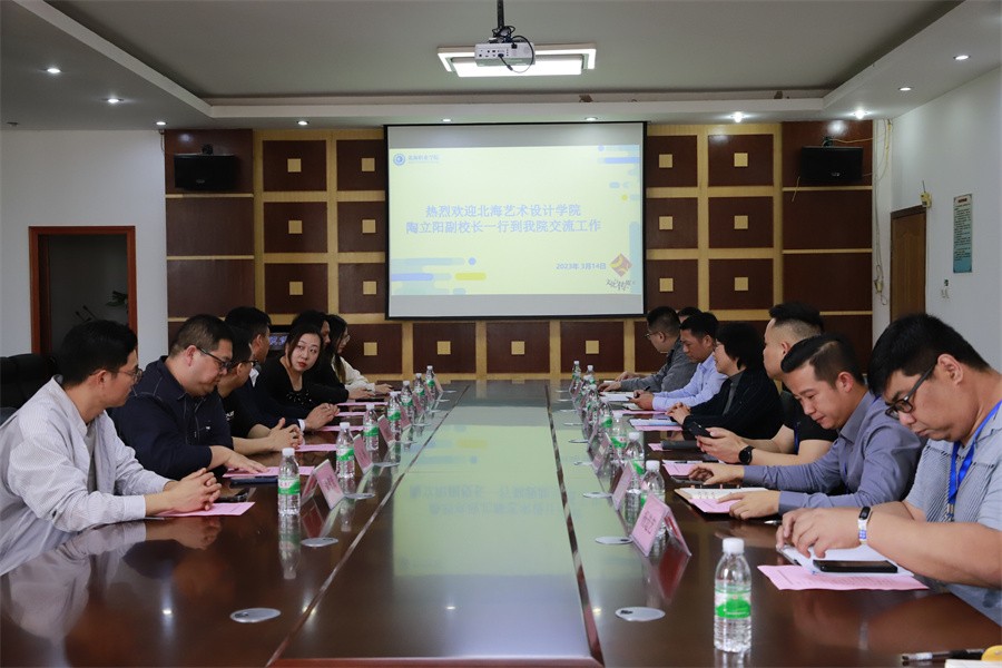 3月14日下午,学校副校长陶立阳,教务处副处长吕雅婷、副处长谭维健、动画与传媒学院副院长刘涛等一行7人到北海职业学院考察交流。