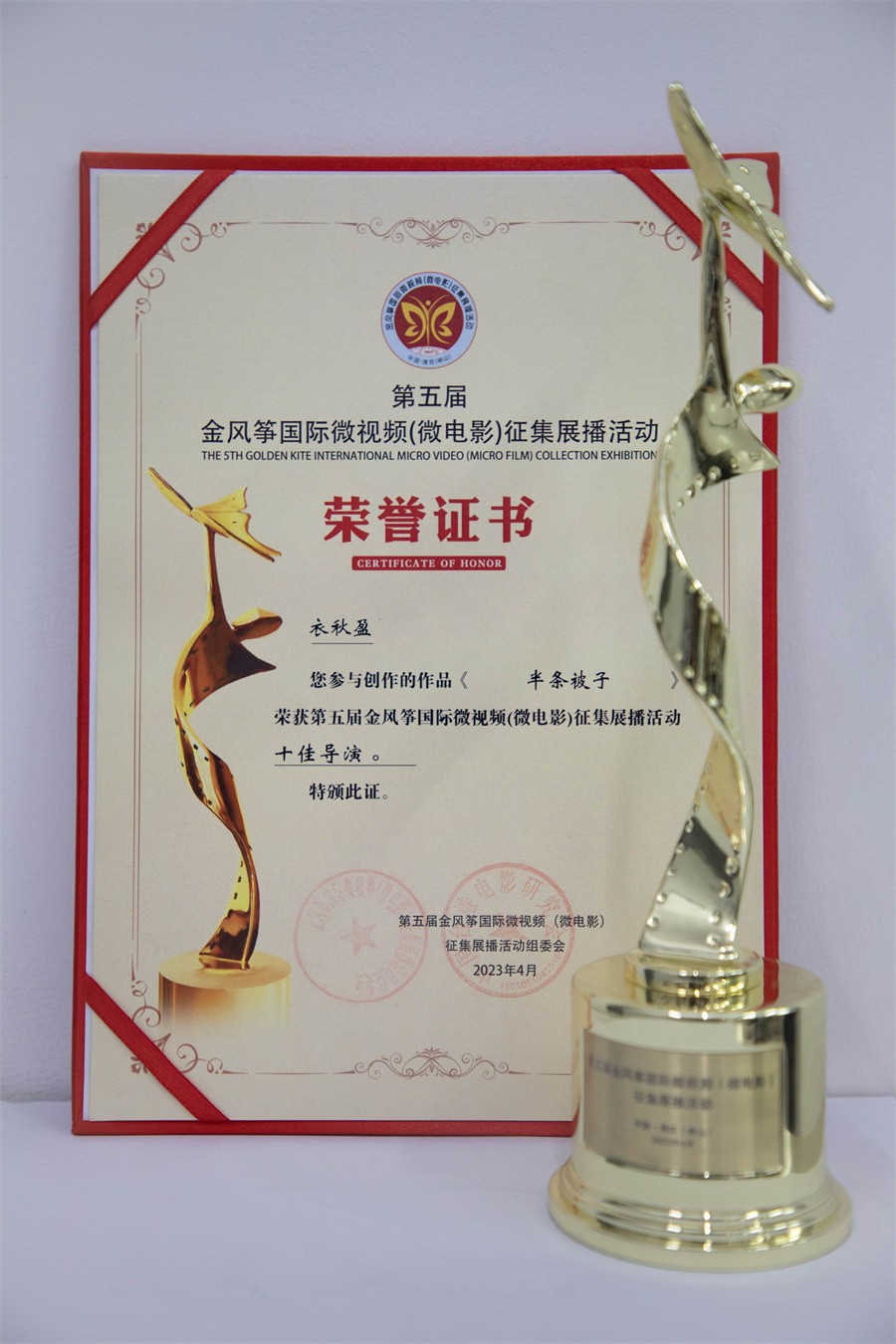 “十佳导演”奖杯及证书