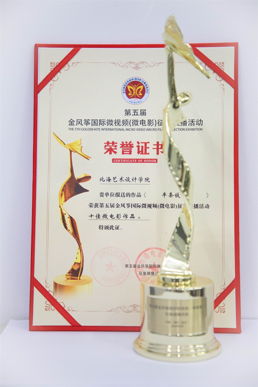 “十佳微电影”证书及奖杯