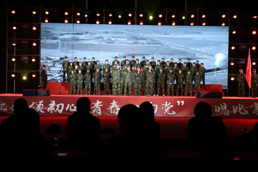 赛场上,来自各学院、军训营队的参赛队伍身着笔挺军训服,目光如炬、精神抖擞、意气风发。一首震撼人心的《保卫黄河》拉开比赛的帷幕。随后,《我爱你中国》《祖国不会忘记》《我宣誓》《当那一天来临》《练为战》《请你检阅》《强军战歌》等15首经典红歌轮番上演,每一曲都将个人理想深度融入国家命运的壮阔征程,把青春热血热忱投身强军事业的伟大建设,生动诠释了爱国主义与革命英雄主义的深刻交融。歌声兼具恢弘气势与悠扬曲调,时而迸发催人奋进的炽热激情,时而流淌感人至深的纯粹真情;既在旋律中勾勒出历史的沉淀轨迹,也在歌声里诠释出责任的重托意义。赛后,军训各营队的拉歌环节将现场气氛推向高潮,一段段激昂的旋律,展现热血与担当;一曲曲昂扬的乐章,尽显坚定与责任。整场比赛活动也在这股拉歌热潮中,画上了圆满句号。