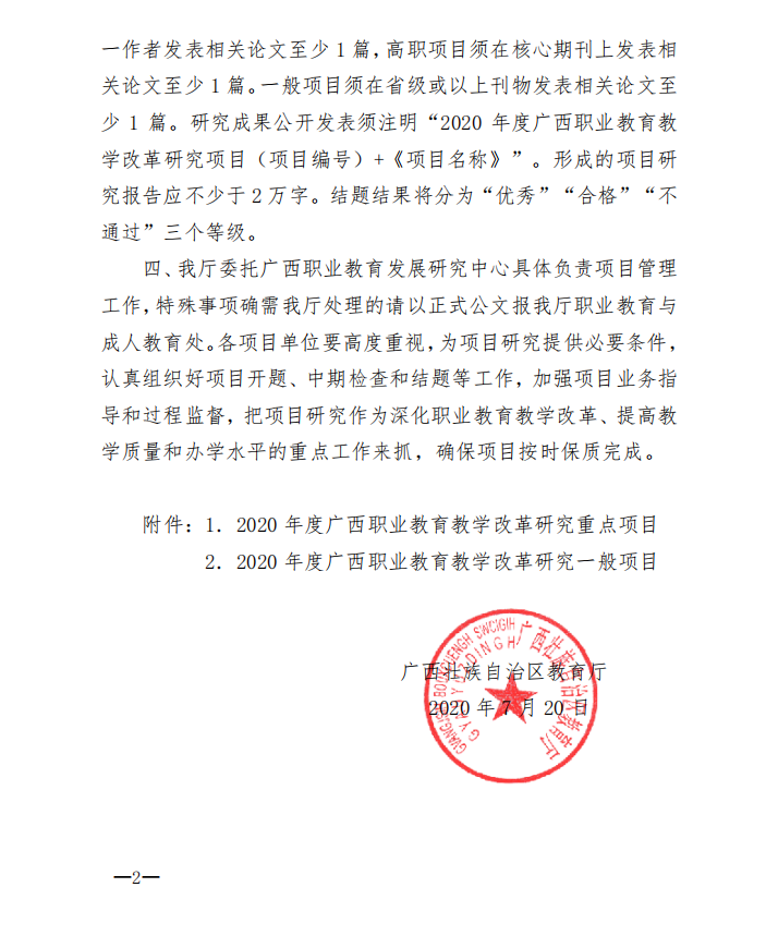 附件:自治区教育厅关于公布2020年度 广西职业教育教学改革研究项目名单