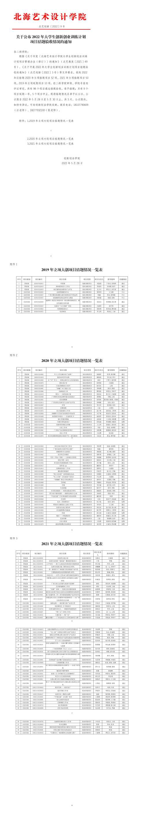 北艺创新〔2022〕9号关于公布2022年大学生创新创业训练计划