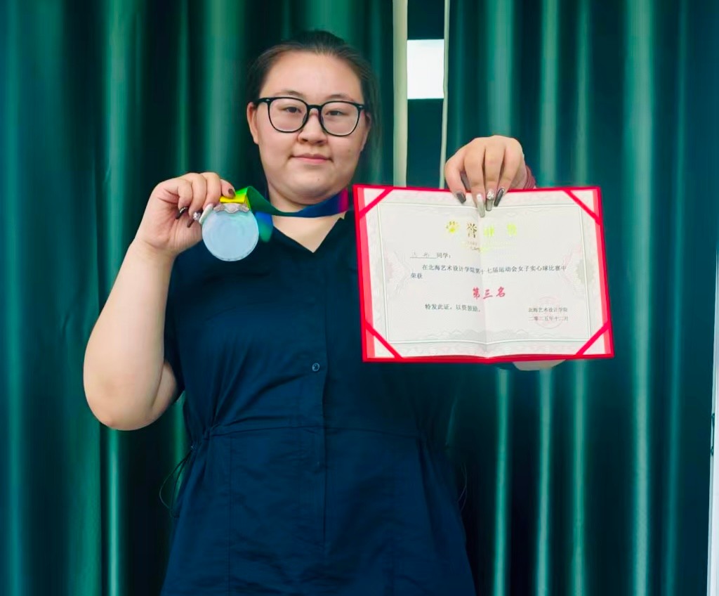服饰2503班的沙彤同学也不甘示弱,在女子实心球预决赛中凭借9米84的成绩获得第三名。