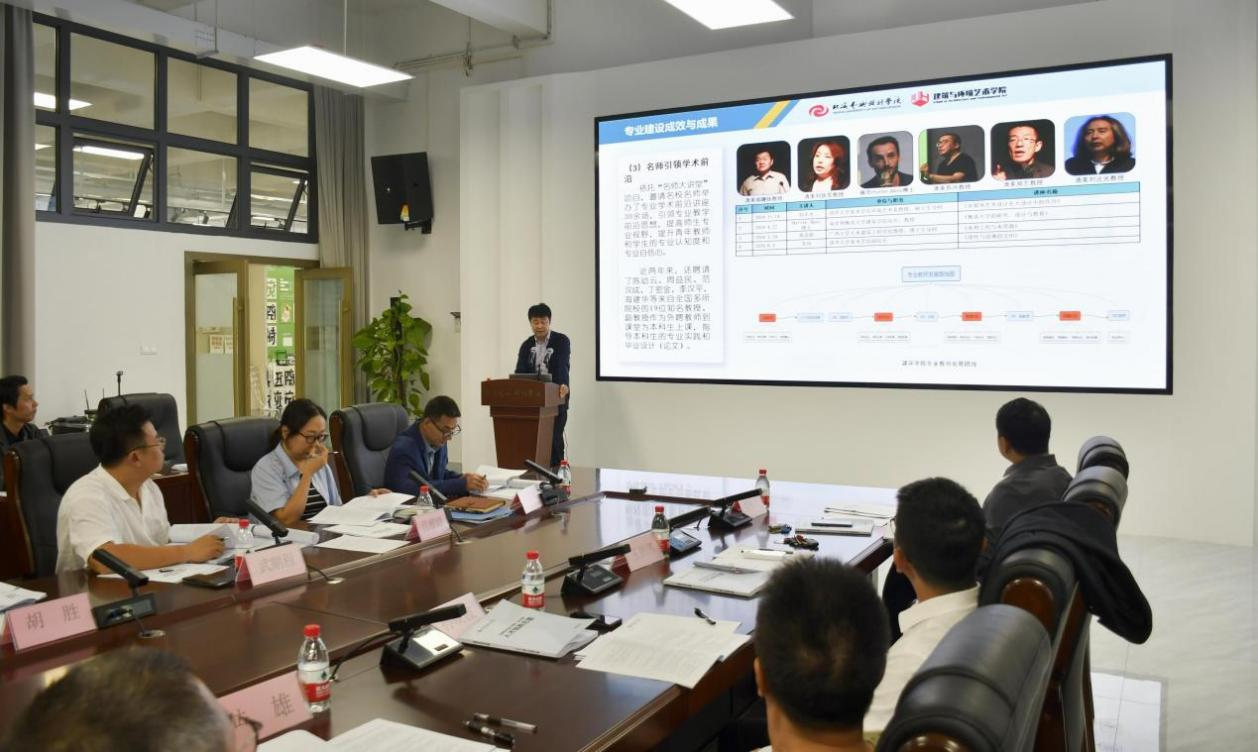 会上,环境设计、动画和视觉传达设计3个自治区级一流专业负责人分别对照《北海艺术设计学院自治区级一流本科专业建设考核标准》中的评估指标和主要观测点展开汇报,其中,环境设计专业做校内验收汇报,动画和视觉传达设计专业做中期建设情况汇报。