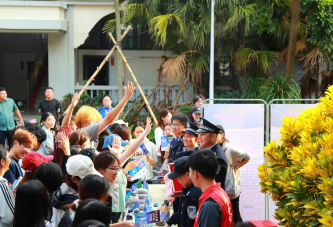 外场宣传展示区同样人气高涨,公安民警、银行职员、通信专员通过展板讲解、实物演示、一对一答疑等方式,揭秘“两卡” 风险、账户冻结等热点问题,让师生在沉浸式体验中提升识诈能力。