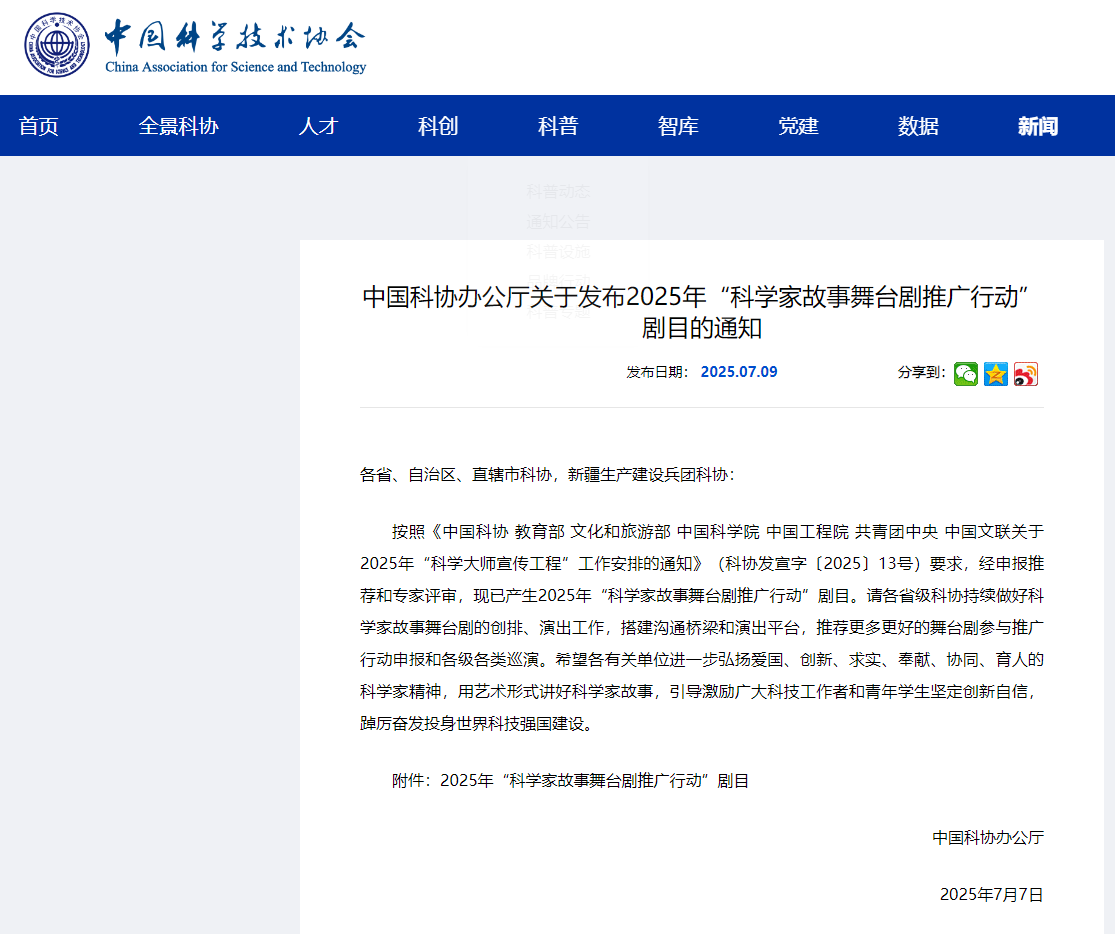 (立项文件引用自中国科学技术协会:中国科协办公厅关于发布2025年“科学家故事舞台剧推广行动”剧目的通知 (cast.org.cn))