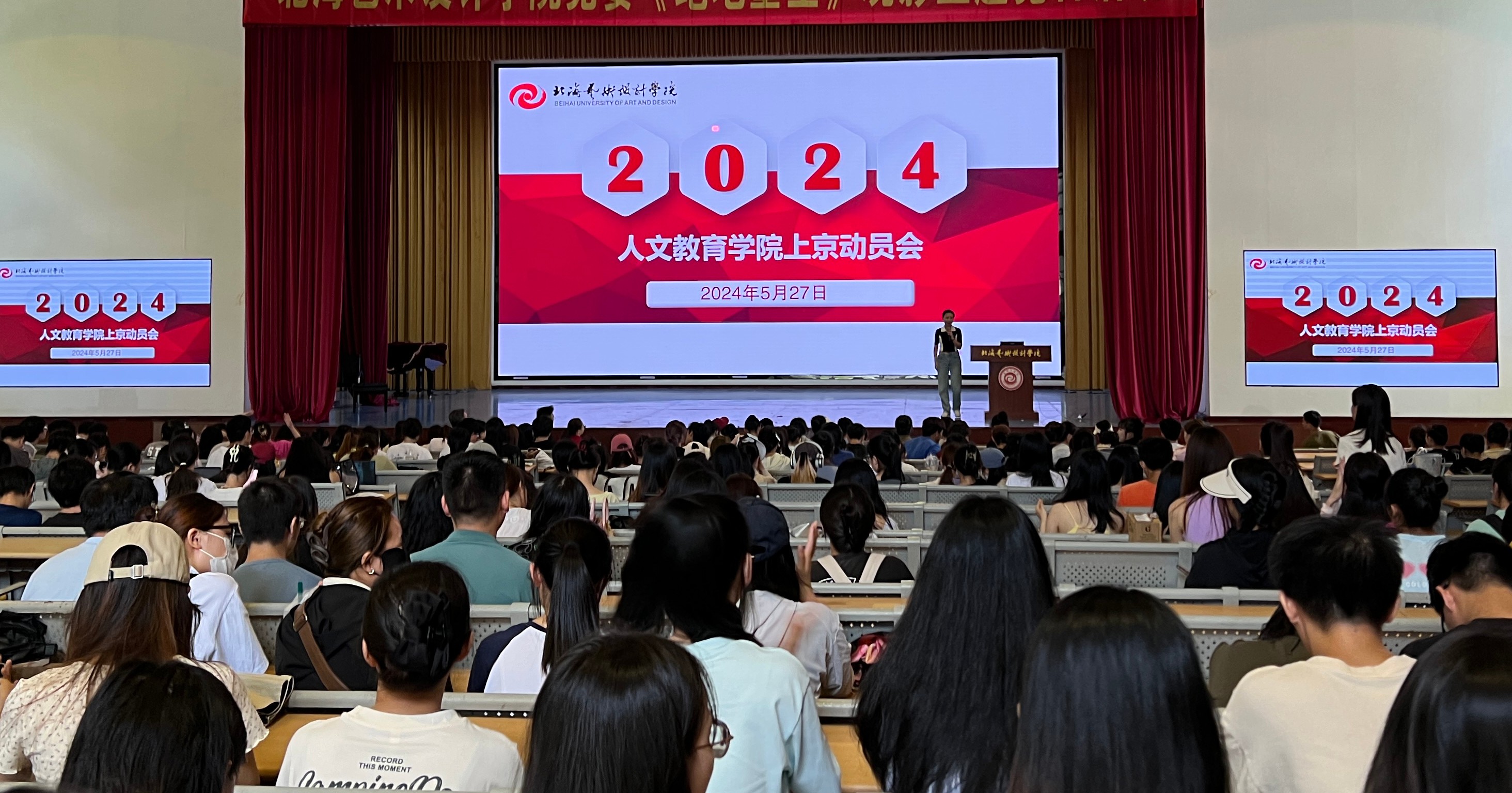 2024年5月27日人文教育学院上京动员大会在西区大礼堂顺利召开。诚邀学校邱杰副校长、学院熊秀峰院长、李谦副院长出席讲话。本次大会由邓欢副书记主持,2021级舞蹈表演、汉语言文学、学前教育、哲学、艺术教育专业全体同学参加。