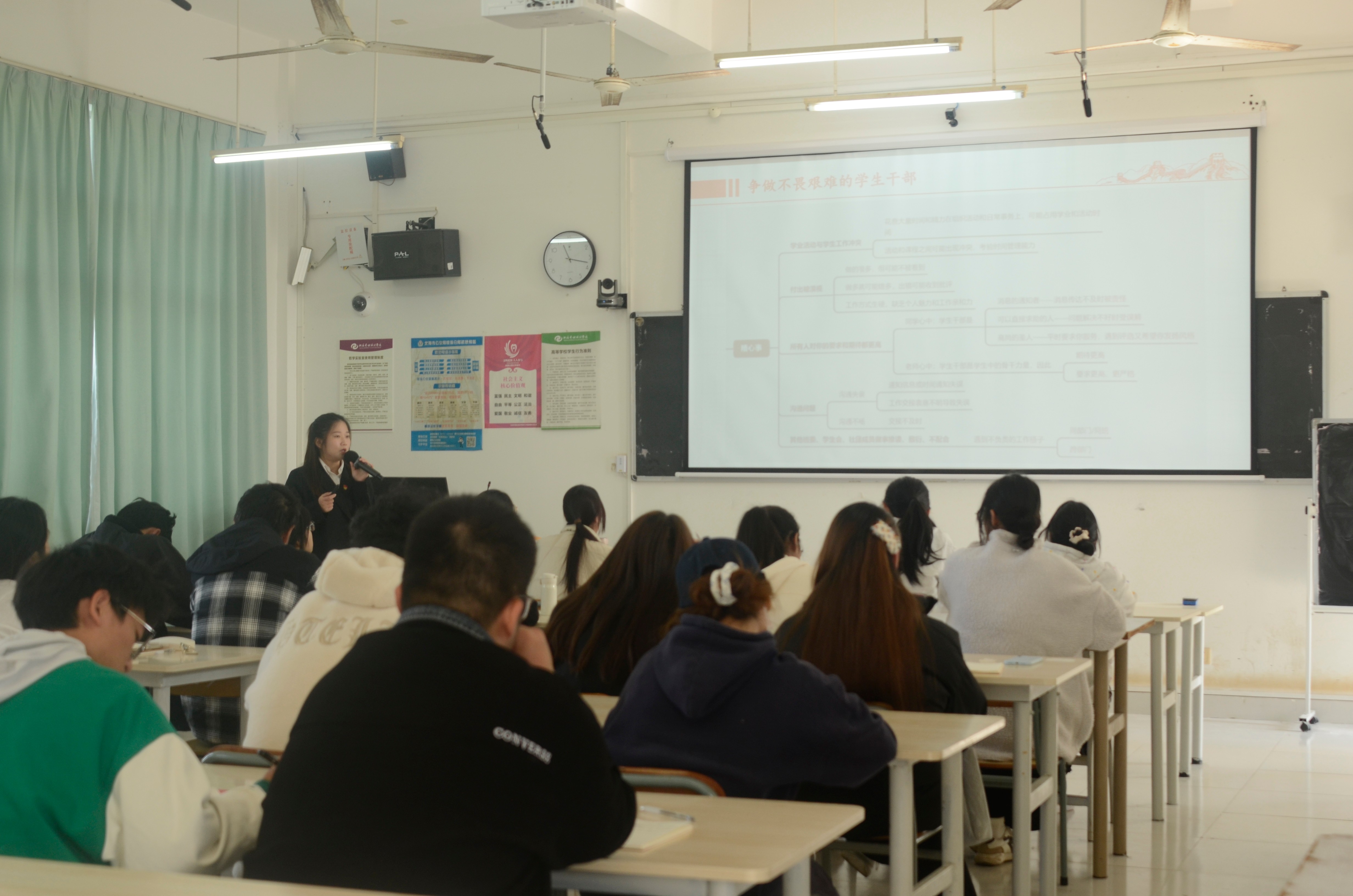 教育学院党支部书记黄思敏以“争当新时代有担当的学生干部”为题,强调学生干部应从学生中来,到学生中去,更好地服务学生,勇于承担。以高远的理想为指引,坚定的信念作支撑,真正做到立身正、行事端,时刻保持光明磊落的胸怀推动社会向着更加美好的方向大步迈进。