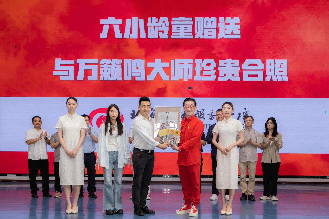 随后的环节,六小龄童赠送的与动画大师万籁鸣的珍贵合影由动画与传媒学院院长孙永辉接过并传递给学生代表时,象征艺术传承的合影又青年一代手中有了新的延续。“美猴王书屋”共建证书的颁发,不仅是对我校在政企校三方文化共建中协同助力的致谢,更标志着这一承载西游文化的阅读空间正式扎根北海市图书馆,为经典传承开辟新的场域。西游文化研究院揭牌仪式不仅为文学院开启经典研究的新篇章让古老文本与数字时代碰撞出创新的智慧火花。