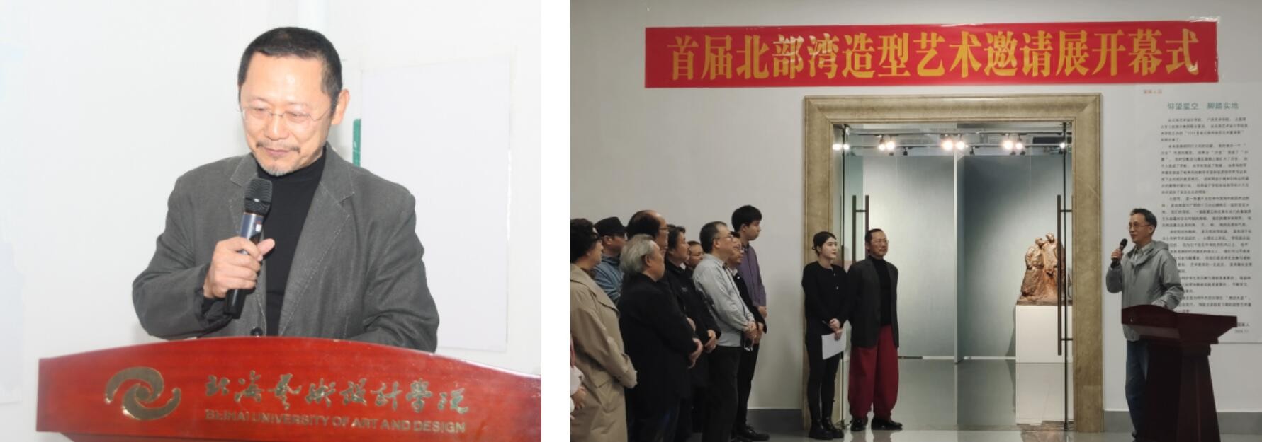 在开幕式上,来自三所高校的教授代表分别致辞,在对展览作品给予肯定的同时,对作为主办方的北海艺术设计学院领导对展览以及优越展览空间的支持表示感谢。