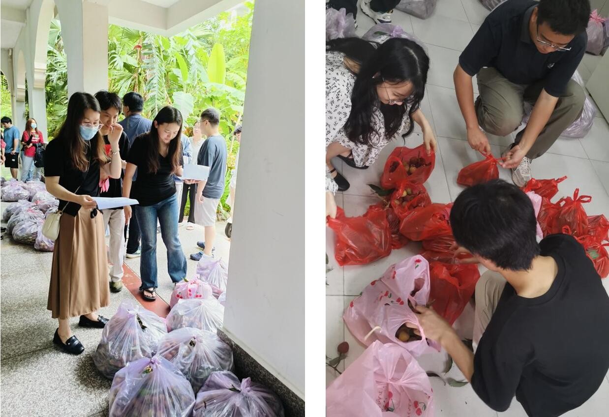 为确保能将福利顺利发放到每一位美术学院学生手中,6月2日上午,美院学工办便与校学工处做好对接,学工办教师全员到场共同分装美术学院各班级荔枝包裹,并将数百斤荔枝运回以便学生们领取。学工办教师在此次活动中密切关注每一个班级的领取进度,认真分装荔枝,确保不漏一人、尽数发放。