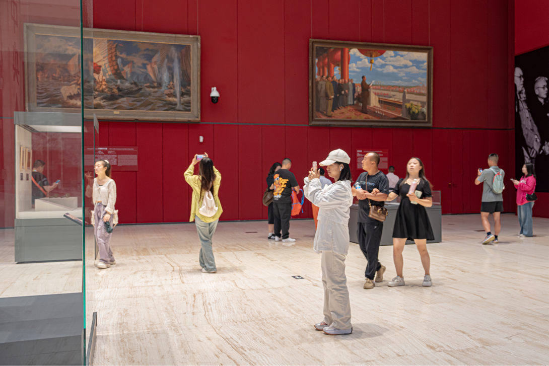 在《屹立东方——馆藏经典美术作品展》展厅,师生们被一件件珍贵的历史文物深深吸引。这些展品通过回顾中国自鸦片战争以来的苦难与抗争,展示了中国共产党领导全国各族人民争取民族独立、人民解放、国家富强的光辉历程。师生们近距离观察展品,了解其背后的历史故事,深刻感受到中华民族从屈辱中站起、从苦难中奋起的伟大历程,增强了文化自信和民族自豪感。