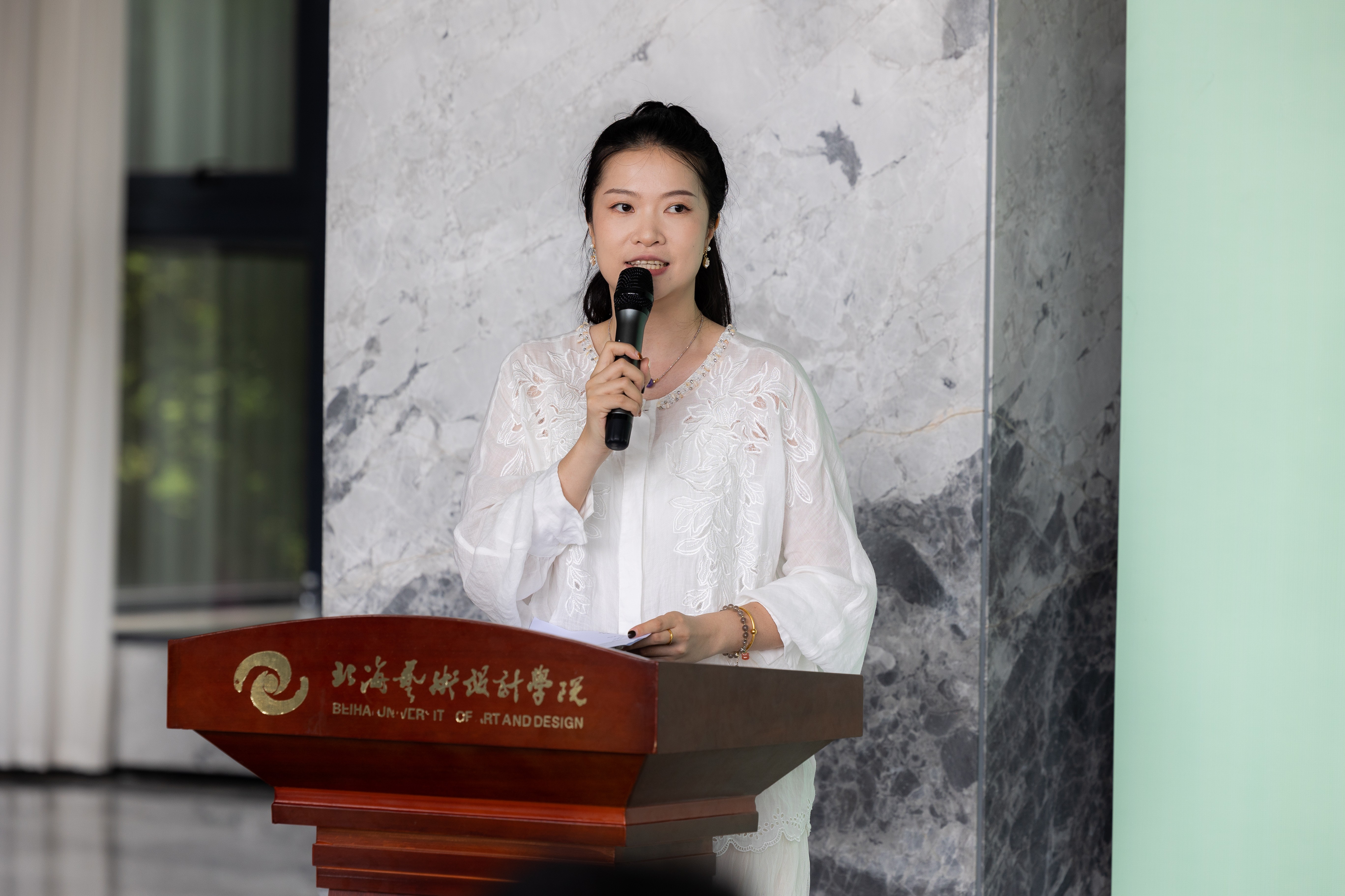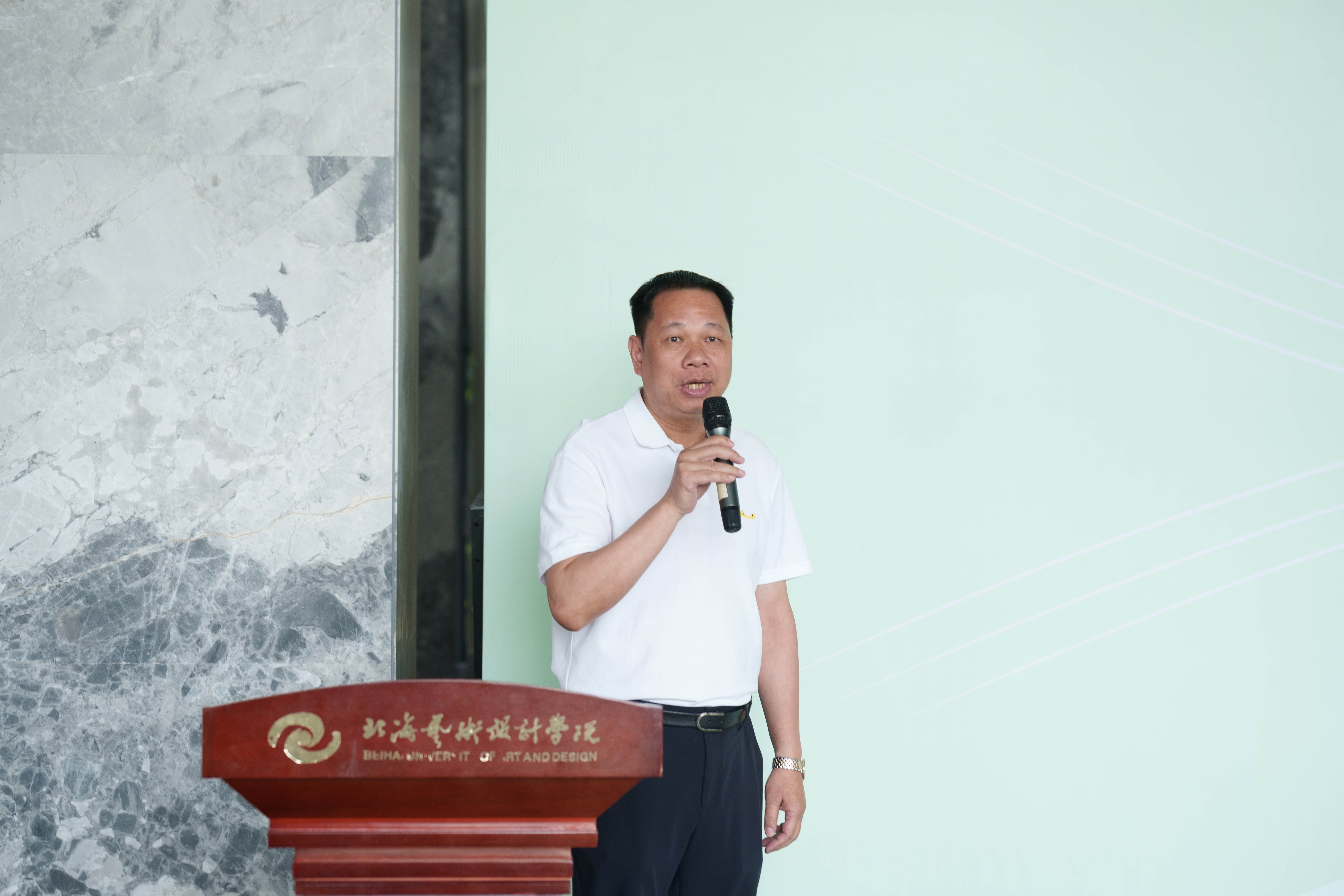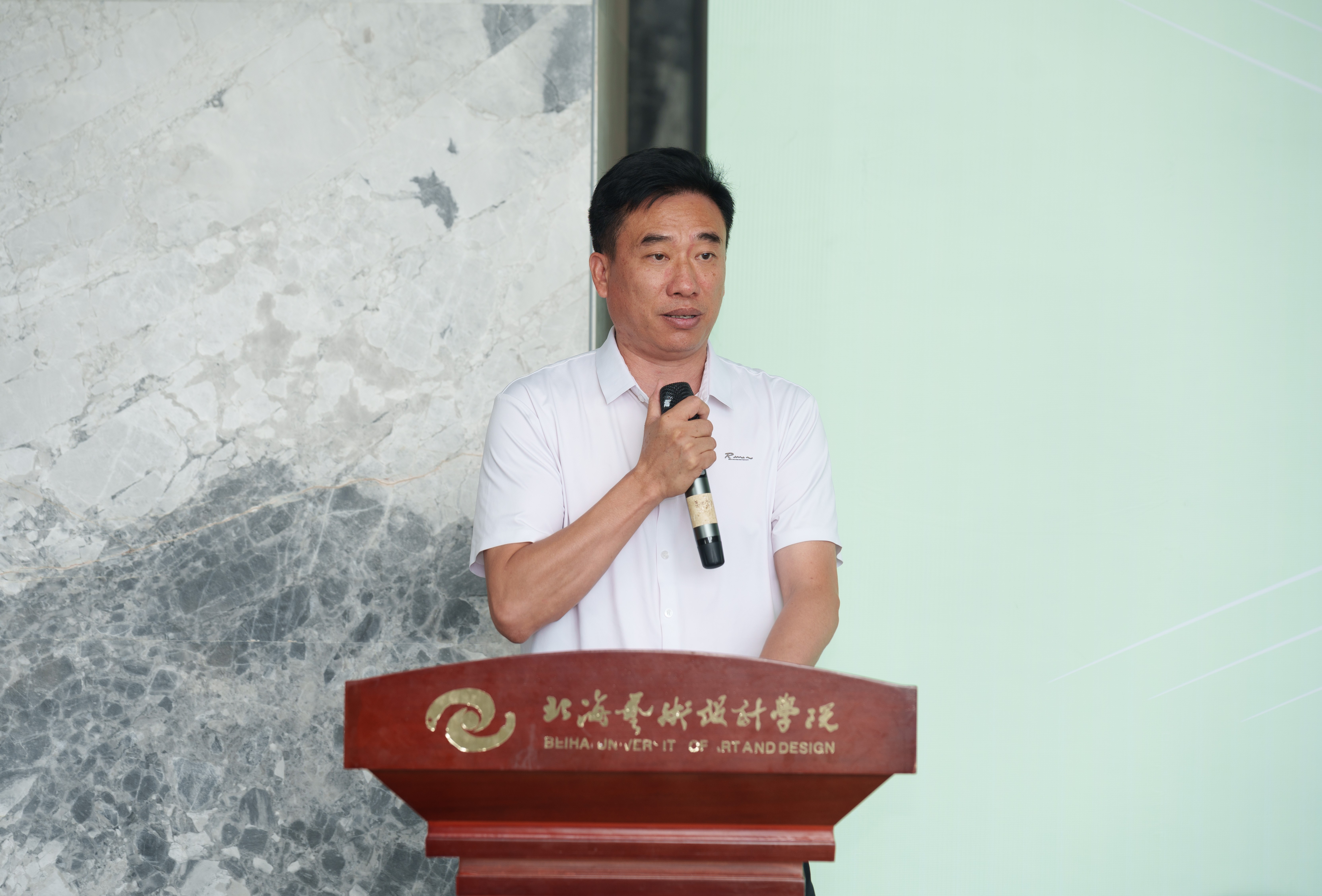 随后,美术学院执行院长龚为致辞,美术学院以“发现美—表达美—传递美”为育人脉络,融入地域文化教学。“青衿致远艺路同行”2025教学成果汇报展,荟萃学生佳作,是对人才培养成效的检阅。学院始终以北海独特的海洋文化与西部风情为创作源泉,引导学生扎根本土、深植生活。展览见证学院教育理念,也是学子深造启程号角,诚邀各界观展,共话美育未来,培育更多应用型美术学类人才。