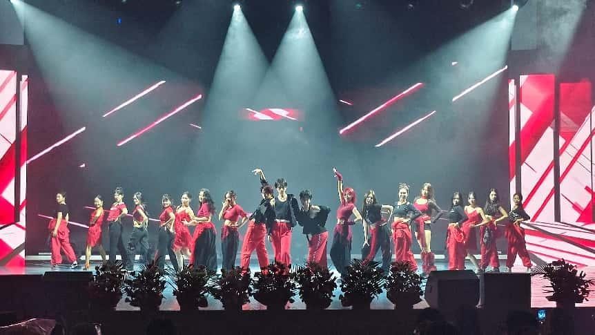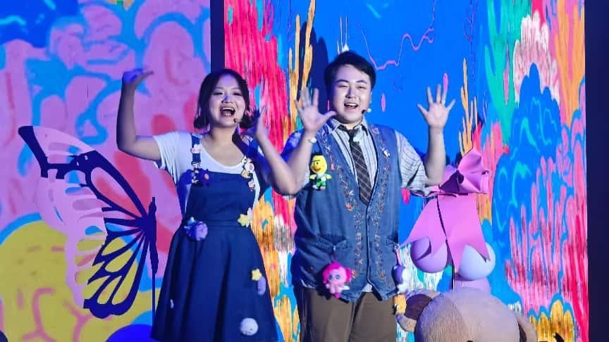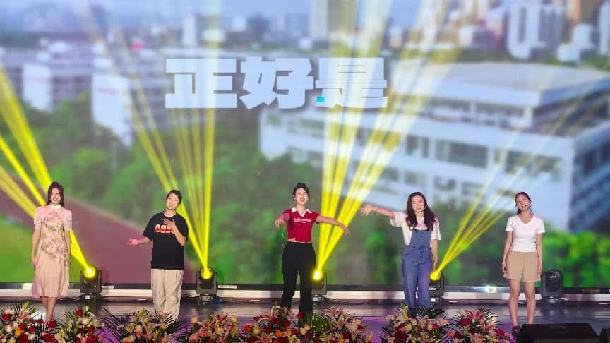 “声浪奔涌・青春交响” 篇章活力四射,点燃全场气氛。主持串烧《珠层里的潮声》中,学子们在不同主持风格间自如切换,或庄重大气,或灵动俏皮,展现出极强的语言驾驭能力与舞台掌控力;配音秀《光影逐梦》堪称 “声音的魔术”,同学们仅凭嗓音就精准复刻经典影视角色,赋予无声画面灵魂,令人惊叹声音塑造的无限可能;舞蹈《光影律动》更是将动感光影与充满张力的肢体语言完美交融,将现场气氛推向首个高潮。