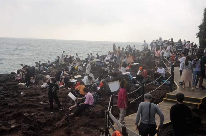 (火山口景区学生写生场景)