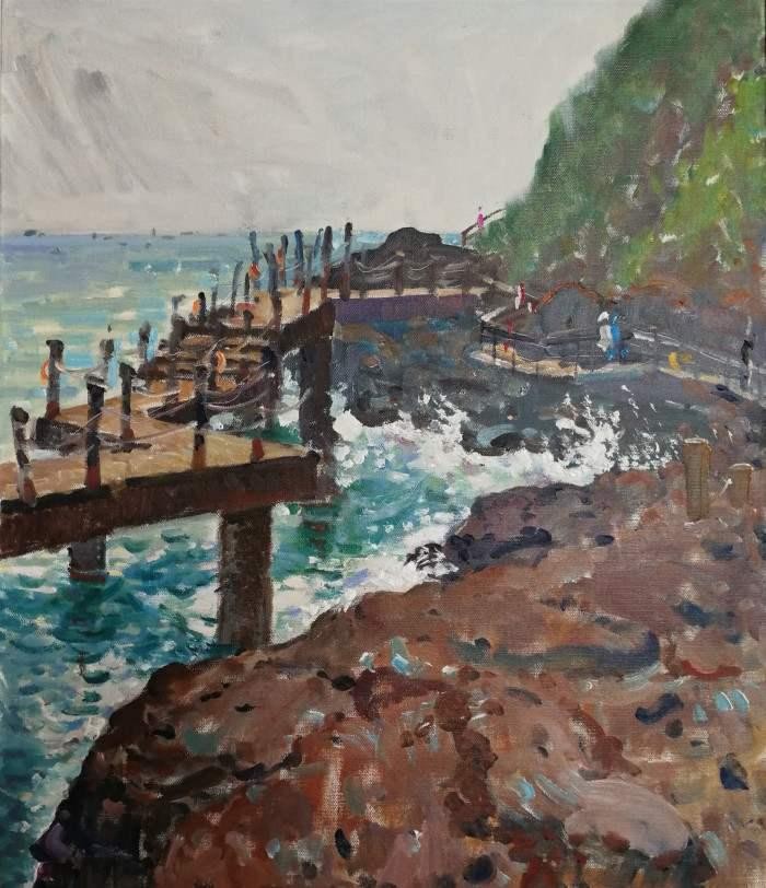11月22日,全体师生前往涠洲岛老码头,并展开写生。