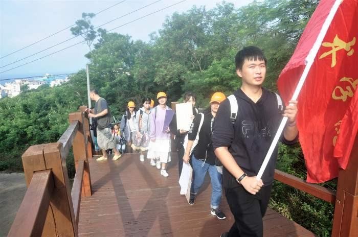 11月20日,全体师生通过栈道步行前往涠洲岛的主要景区——南湾鳄鱼山公园,并在景点集体合影。