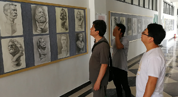 最后高教授来到艺术楼实地指导工作,检查教学文件、抽查平时作业、对绘画专业的写生作品进行讲评。高教授说希望下次再来,可以在课堂实践中对我们进行指导。我们也将期待下次与教授的交流,让我们再次感谢高教授的指导! (陈建江 摄)