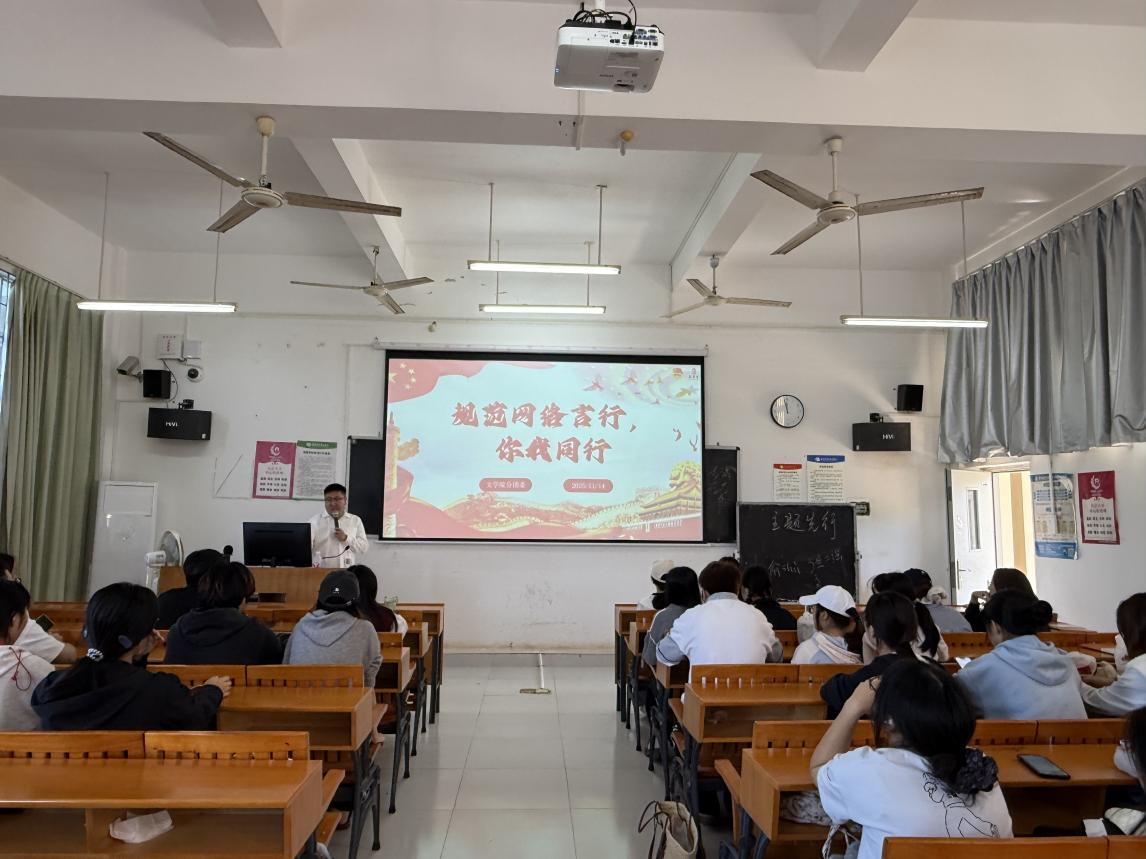 为深入学习宣传贯彻习近平总书记关于网络强国重要思想,顺应互联网时代发展要求,引导团员青年科学识网、文明用网,自觉提升网络媒介素养以及辨别是非能力谣言抵制能力,养成理性表达、友善沟通的良好习惯,11月14日,文学院分团委于觉悟楼303教室开展“规范网络言行,你我同行”主题团日活动。文学院分团委书记马有泽出席活动并主讲,学院各班级团支部书记、组织委员参加活动。