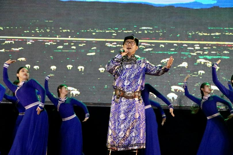 蒙古民歌《呼伦贝尔大草原》歌唱者嗓音浑厚,舞者舞姿优美,将草原的大气与柔美相结合。