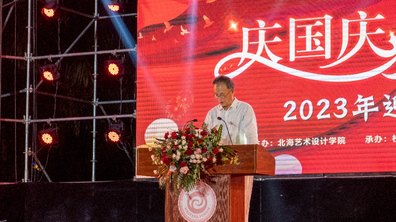 晚会表演节目开始前,校长卢新华首先代表党政领导班子发表讲话,感谢了学校举办者、董事会、校党委的信任和重托,感谢中层干部和全校师生员工的支持。同时提到秉承“以德育人,知行合一”的办学理念,建立了“3+1”北海+北京两地学习的办学模式。