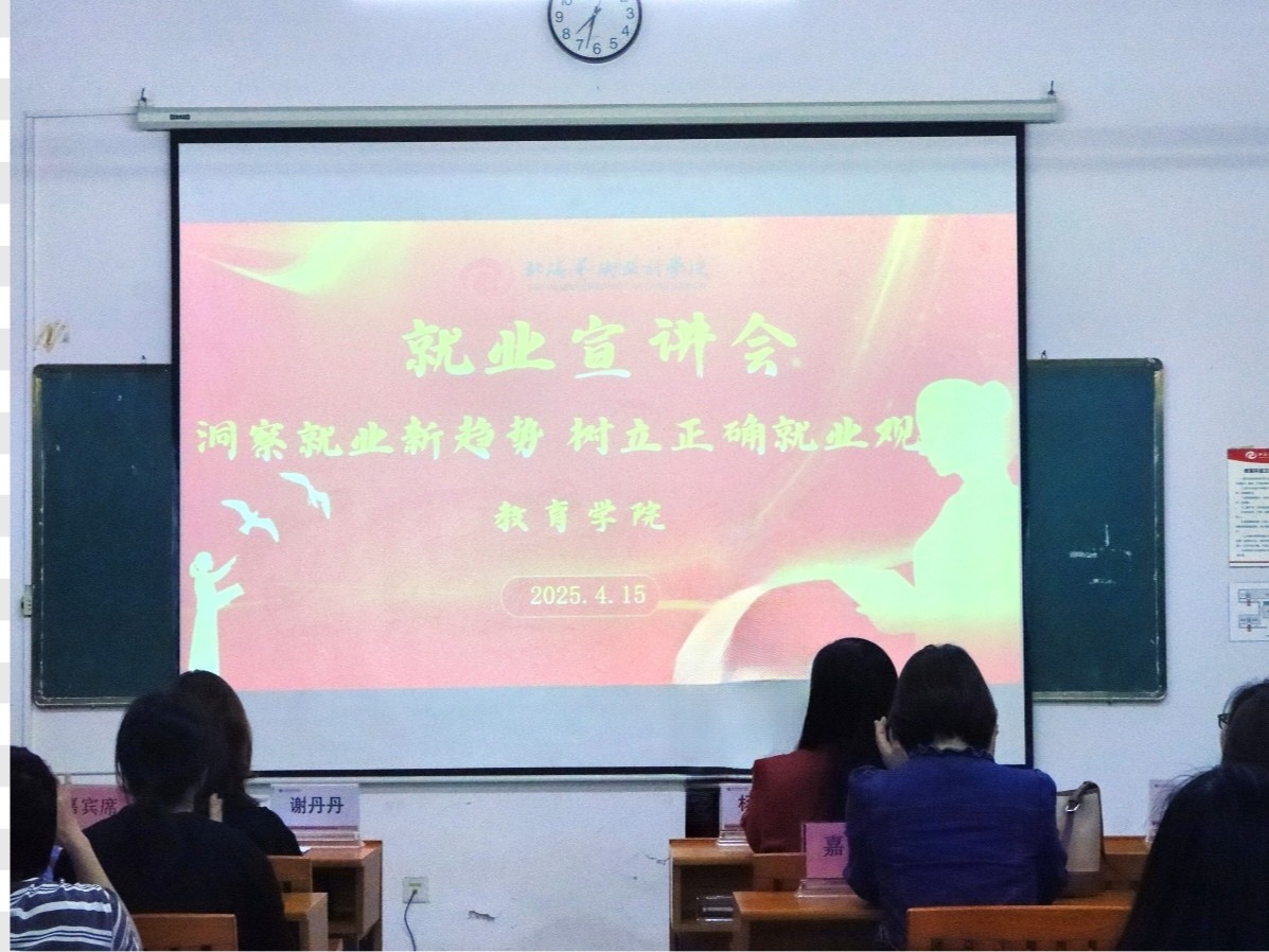为深入贯彻落实党中央关于促进高校毕业生就业工作的决策部署,引导广大青年树立正确的就业观、择业观和职业发展观,帮助学生科学规划职业生涯,增强社会责任感和担当精神,激励青年在中国式现代化建设中积极作为,我校于4月15日在公德楼206开展"洞察就业新趋势,树立正确就业观"主题宣讲活动。