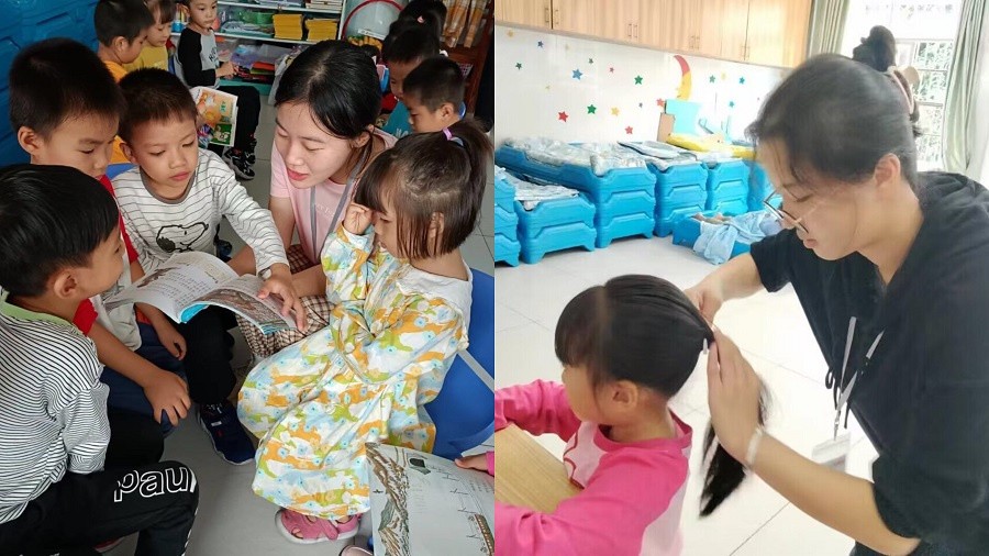 见习生为小朋友读书 见习生为小朋友梳头