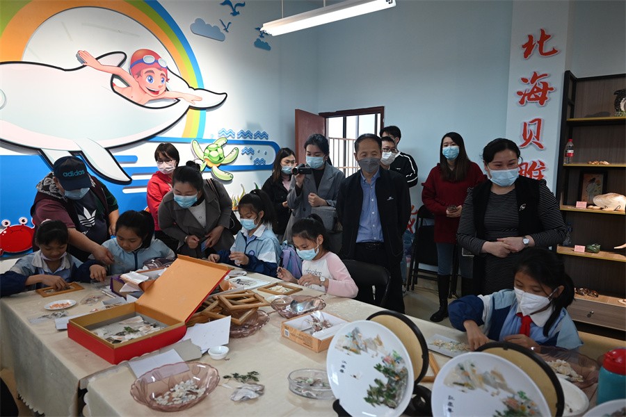 会后,包校长带领郭教授及考察团队一行人进入合唱、舞蹈、非遗贝雕传习、版画与书法的课堂进行实时走访考察,对正在给附校学生授课的艺术教育专业学生在校实习的表现给予了充分肯定。