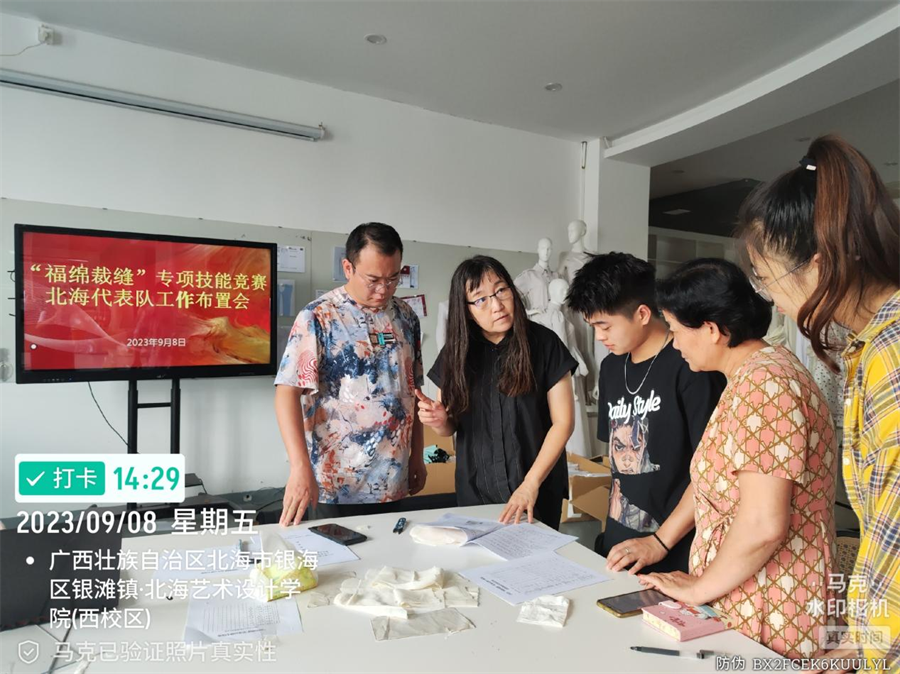 本次大赛在北海市人力资源与社会保障局大力支持下,我校设计艺术学院精心组织安排,通过选拔成立由4名教师、2名同学、1名教练员、1名裁判员组成的北海市代表队参赛,教练员赵明教授带领竞赛团队对技术文件进行分析研究并制定集训方案,开展针对性训练。