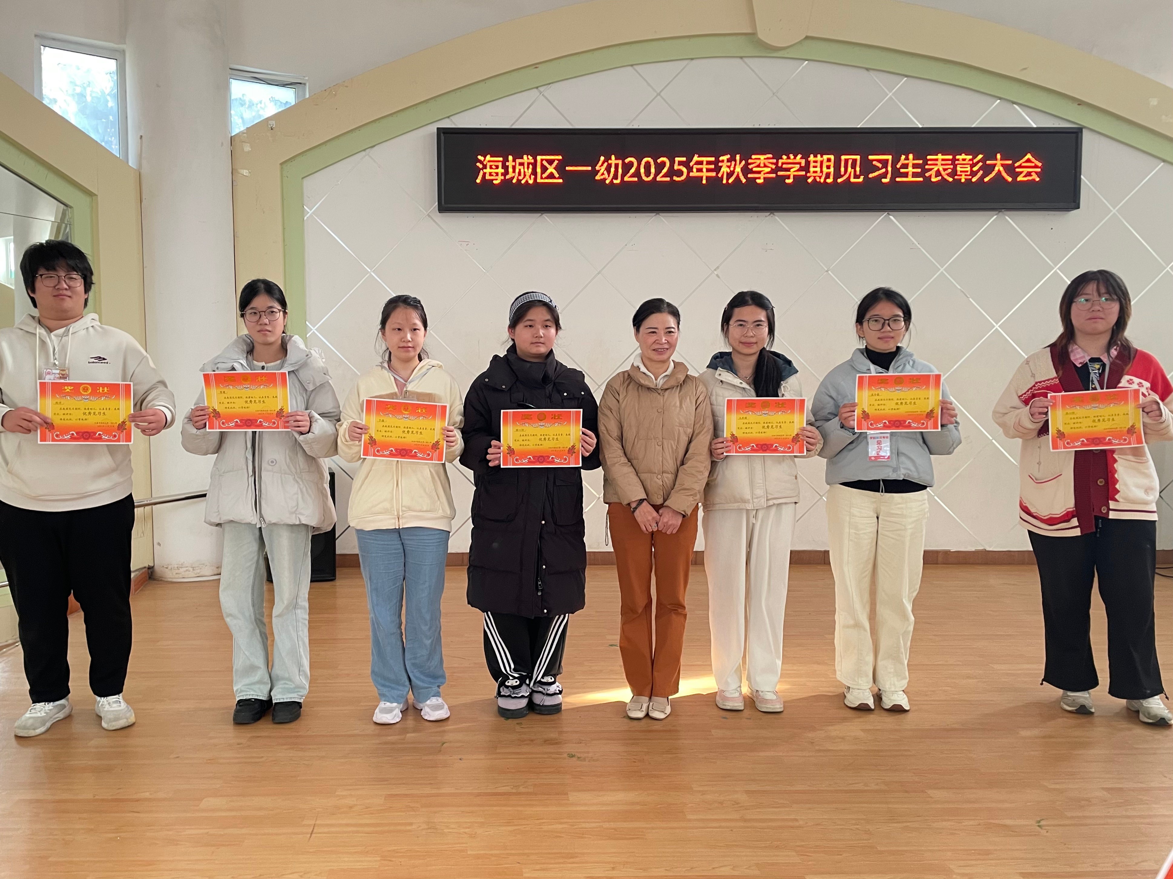 见习活动尾声,各幼儿园负责人在见习总结暨表彰大会致辞中,对见习生在见习期间展现的严谨工作态度、扎实专业基础及主动学习意识给予高度评价,同时寄语全体见习生坚守教育初心,持续提升专业素养,未来在学前教育领域深耕细作,成长为兼具专业能力与教育情怀的高素质幼教工作者。在见习感悟分享环节,见习生代表结合自身实践经历,生动讲述与幼儿相处的典型案例,深入阐述专业能力提升与职业认知转变的具体体会,充分展现本次见习的实践成效。大会尾声,各园负责人为表现优异的见习生颁发荣誉证书,标志着此次教育见习活动圆满结束。