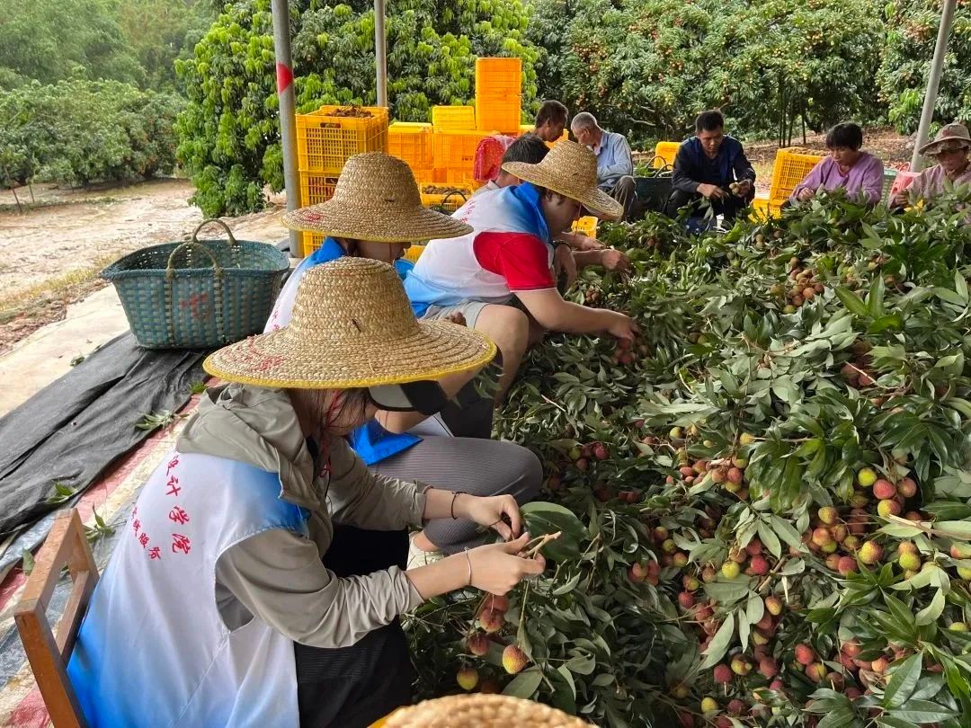 志愿者们分为两队,一队开展了助农采摘打包荔枝,另一队走到田地采摘花生,从源头了解花生的生长,亲身体会当地农民劳作的艰辛。