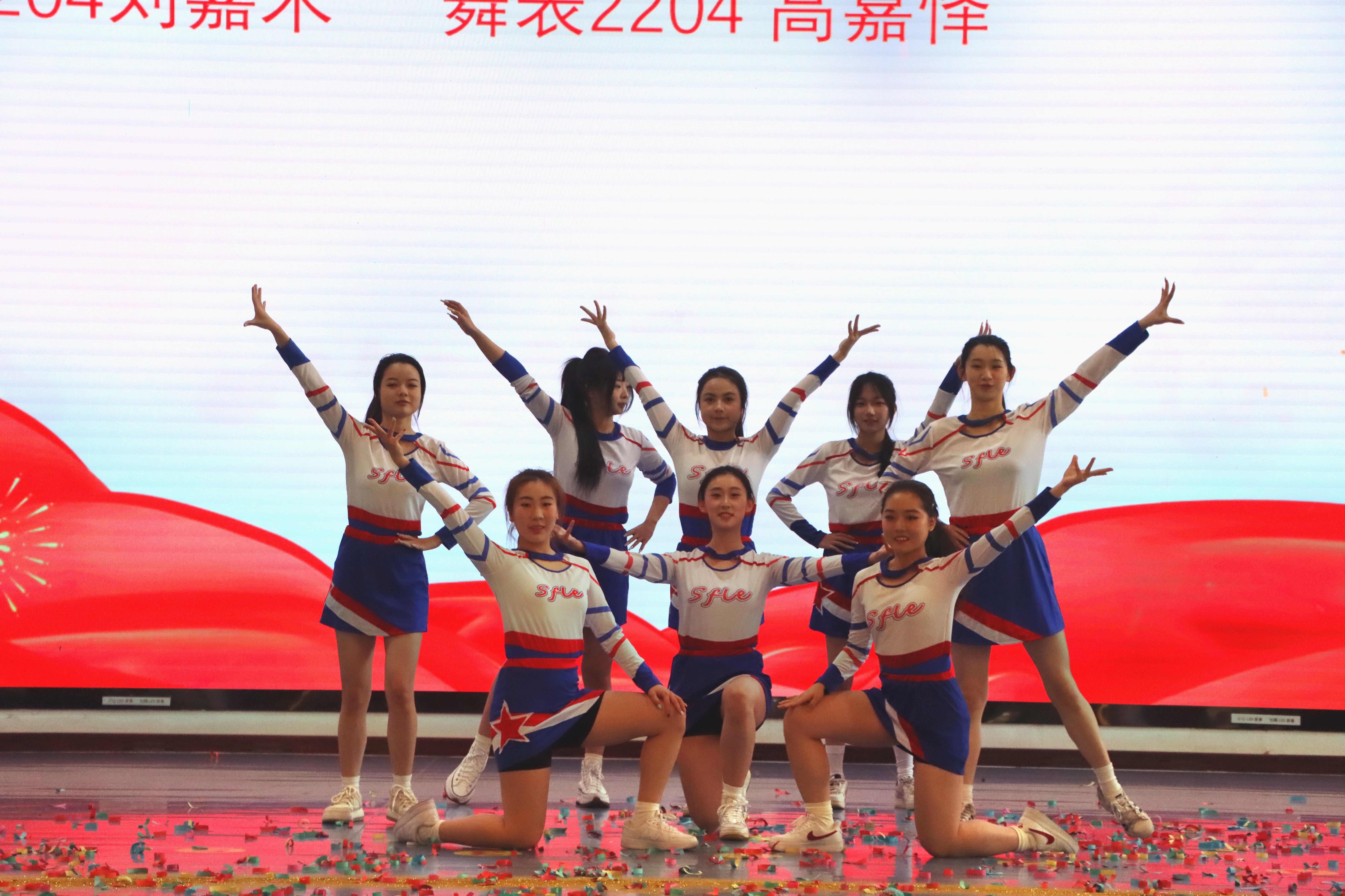 健身操舞活力四射,音乐动感十足。舞者们身姿矫健,动作整齐划一,跳跃、旋转充满力量与美感。汗水在灯光下闪耀,笑容洋溢着青春。